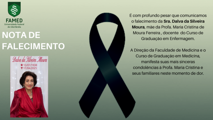 Com grande tristeza, comunicamos o falecimento da Sra. Dalva da Silveira Moura, mãe da Prof.ª Maria Cristina de Moura Ferreira, docente do Curso de Graduação em Enfermagem.