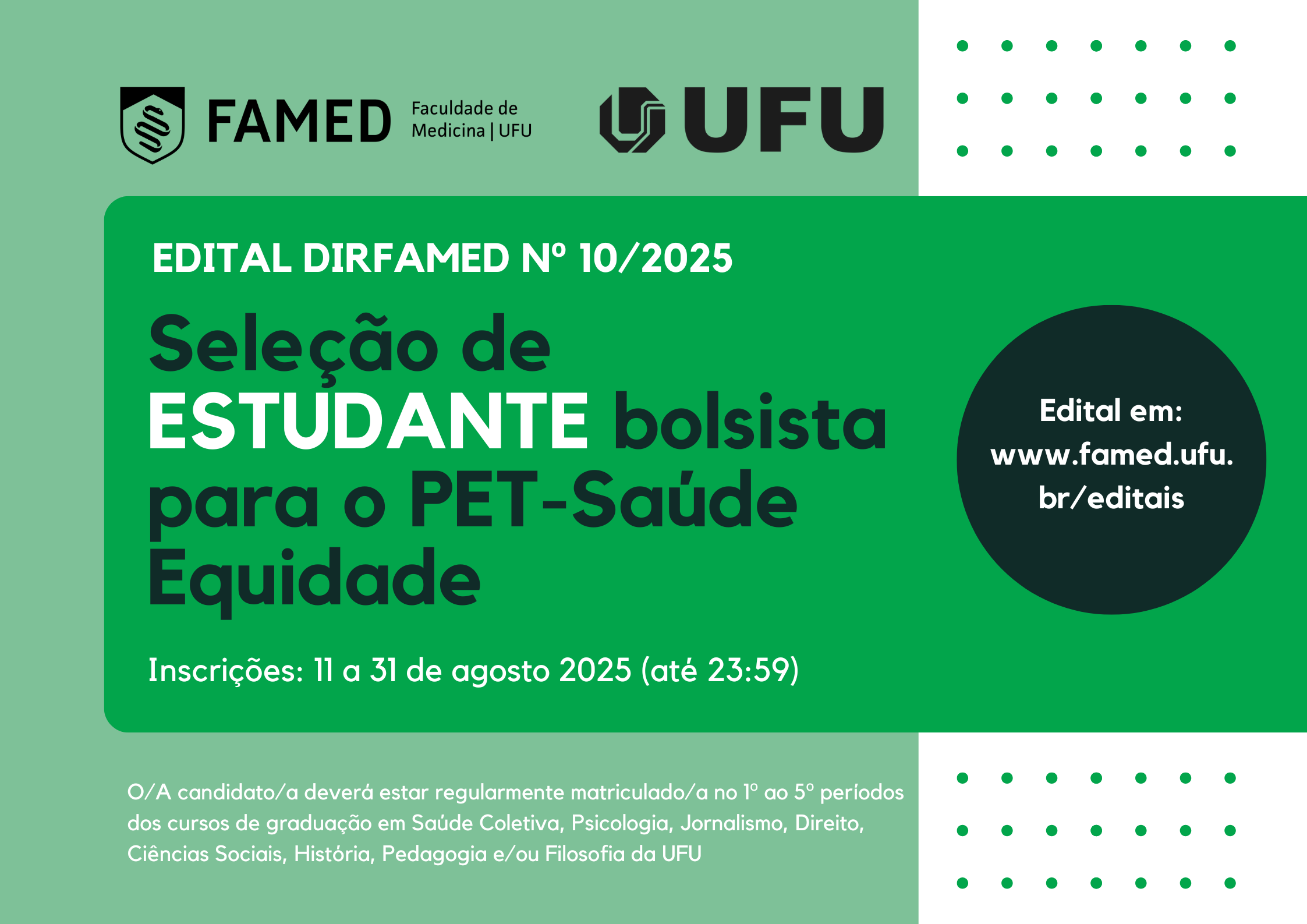 Edital DIRFAMED nº 10/2025 - seleção de ESTUDANTE bolsista para o PET-Saúde Equidade