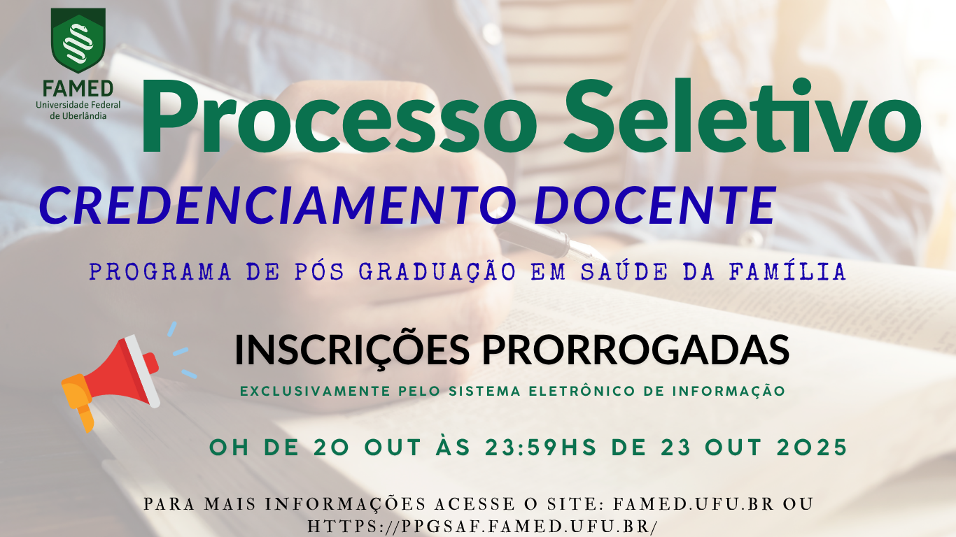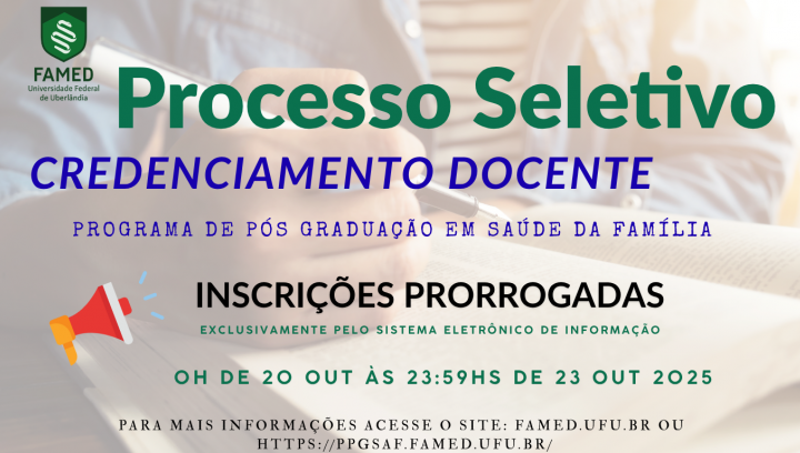 Prorrogadas as Inscrições - Edital de Seleção Docente - PPGSAF