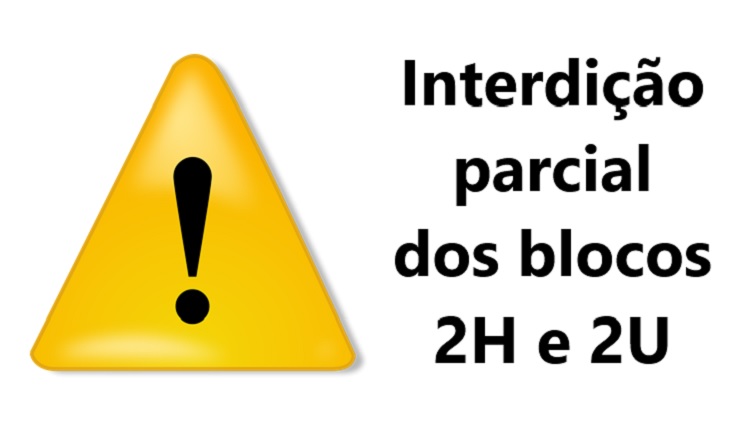 AconteceInterdição parcial dos blocos 2H e 2U por Mariana Andrade Barcelos RosaPublicado: 30/11/2021 - 11:43Última modificación: 10/07/2024 - 16:34 Compartilhe no FacebookTweet Widget Whatsapp Whatsapp Google Plus One