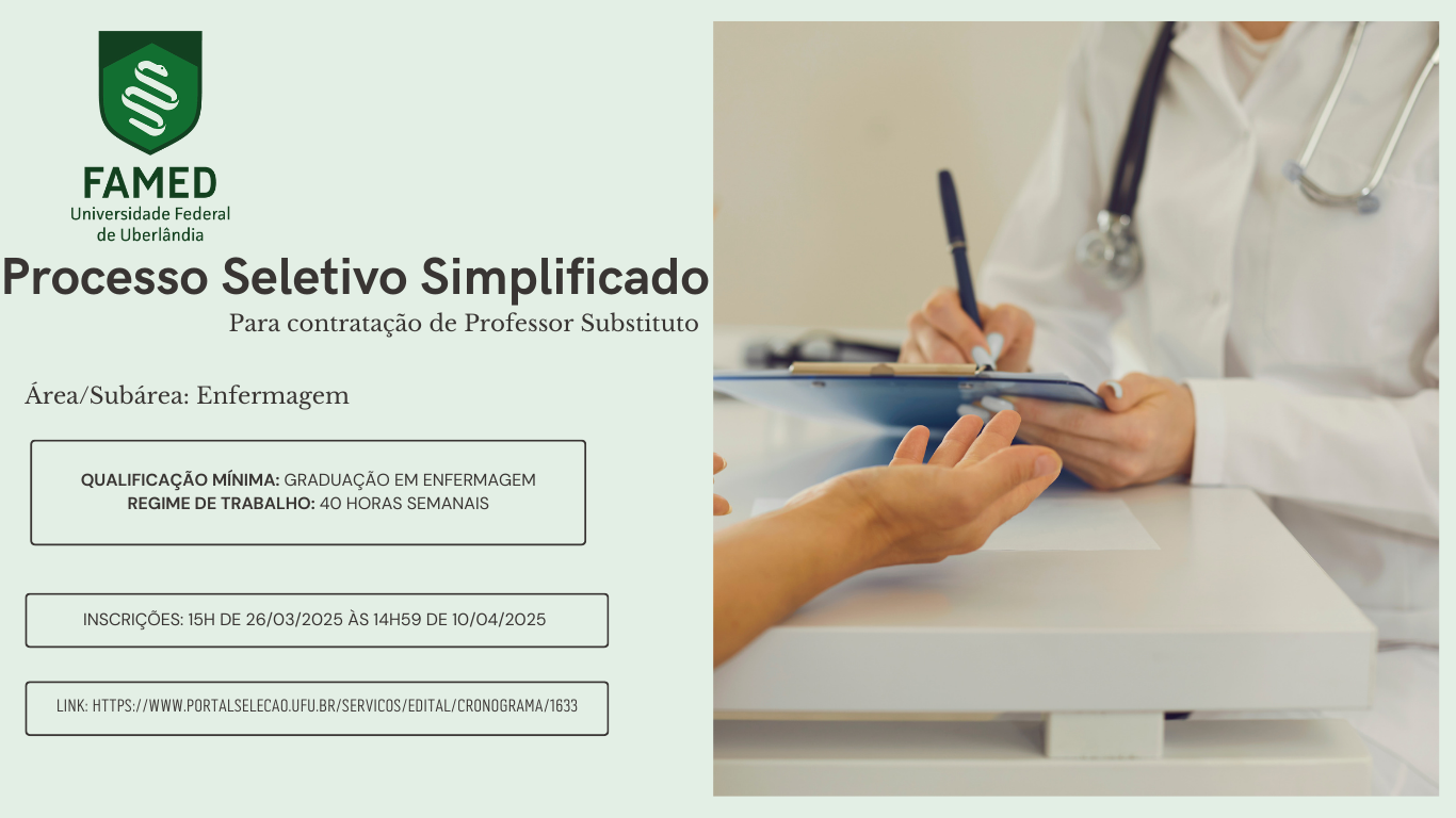 Mais informações acessem o site: https://www.portalselecao.ufu.br/servicos/Edital/cronograma/1633