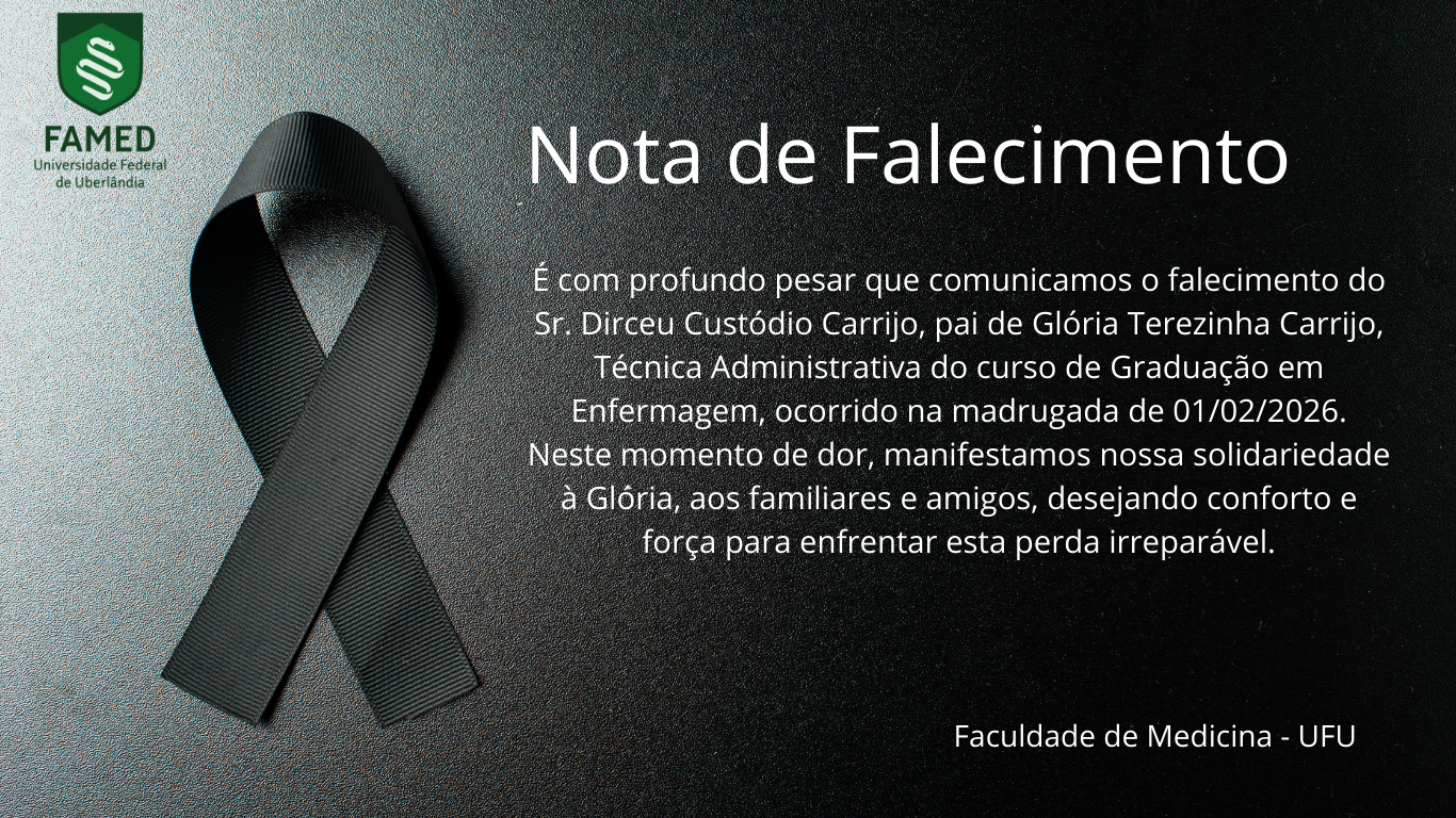 É com profundo pesar que comunicamos o falecimento do Sr. Dirceu Custódio Carrijo, pai de Glória Carrijo Terezinha Carrijo, Técnica Administrativa do curso de Graduação em Enfermagem, ocorrido na madrugada de 01/02/2026.