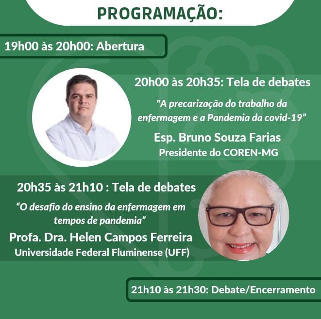 O colegiado do Curso de Graduação em Enfermagem da Universidade Federal de Uberlândia (UFU) irá promover um evento no dia 31 de maio às 19:00 horas sobre o ensino e o trabalho da enfermagem durante a pandemia do Covid-19.