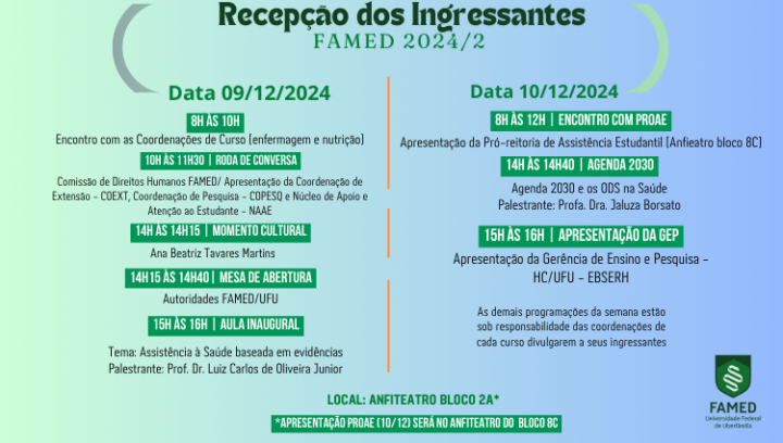 A Faculdade de Medicina da Universidade Federal de Uberlândia (UFU) tem a alegria de dar as boas-vindas aos novos ingressantes do semestre 2024/2!