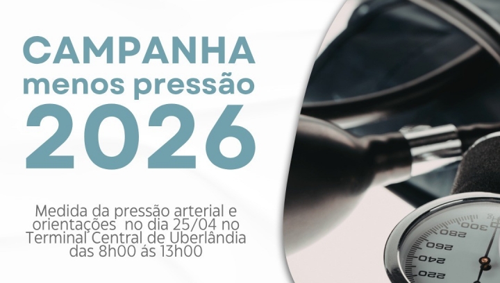 No dia 25 de abril de 2026, em alusão ao Dia Nacional de Prevenção e Combate à Hipertensão Arterial, será realizada, em Uberlândia (MG), a Campanha Menos Pressão, iniciativa nacional promovida pela Sociedade Brasileira de Hipertensão (SBH).