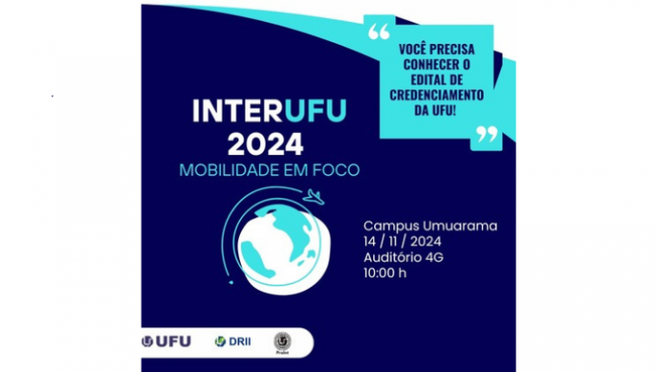 O evento trará uma série de palestras e discussões sobre a internacionalização e o funcionamento do programa de mobilidade acadêmica na Universidade Federal de Uberlândia (UFU), além de divulgar o edital de credenciamento para mobilidade, que abrirá inscrições ainda este ano.