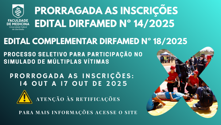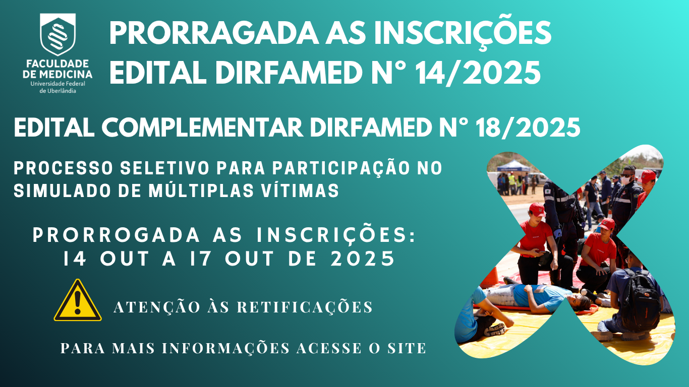 O referido edital dispõe sobre a seleção de estudantes de extensão, que atuarão junto ao programa de Extensão em Educação Interprofissional e Trabalho colaborativo na Organização da Rede de Urgência e Emergência (RUE), no desenvolvimento de atividades durante o fórum e simulado de múltiplas vítimas, a ser realizados nos dias 04, 05 e 06 de Dezembro de 2025.