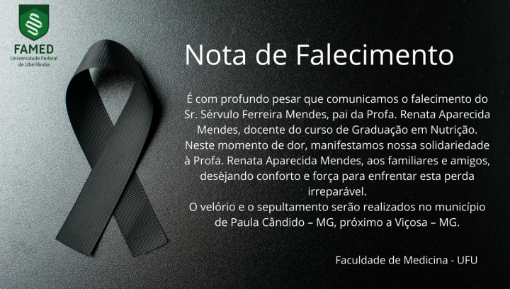 Neste momento de dor, manifestamos nossa solidariedade à Profa. Renata Aparecida Mendes, aos familiares e amigos, desejando conforto e força para enfrentar esta perda irreparável.